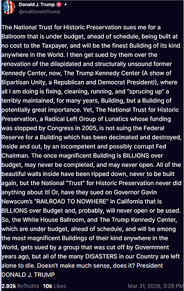 The Mango Menace is crashing out again on Truth Social because a judge stopped his completely deranged White House destruction — err, “construction” project