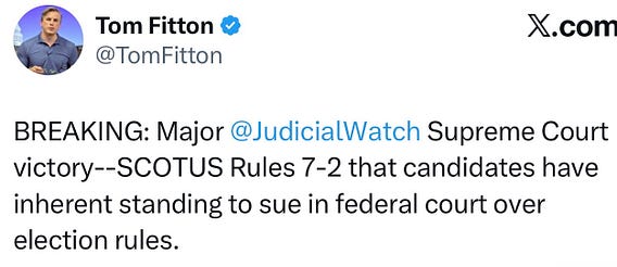 Now SCOTUS has ruled that candidates have standing to sue for election fraud.