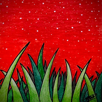 Coloured pencils and acrylic marker on paper, 4"x4”