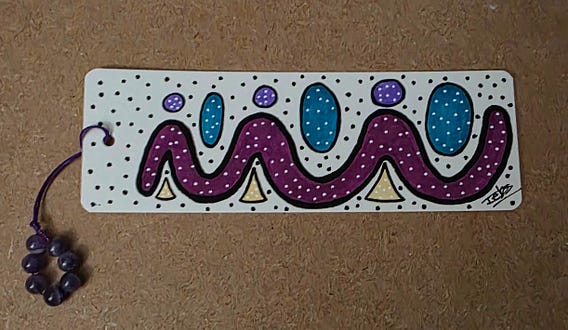 Made my wife a doodle bookmark with some teeny amethyst beads.
