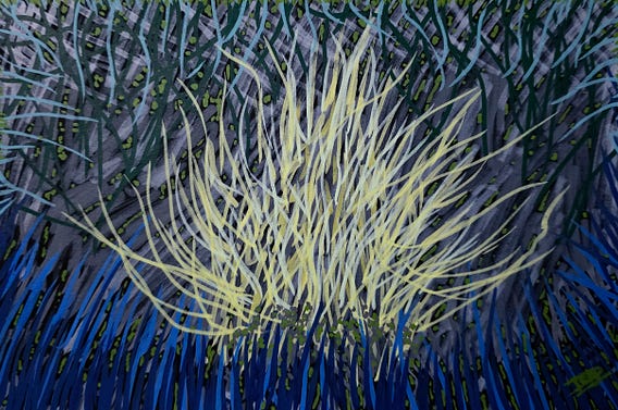 An as-yet-untitled stream of consciousness drawing I did tonight. I just knew what paper and colours I wanted to use, and let my breathing do the work. It feels kinda sad and kinda powerful at the same time.