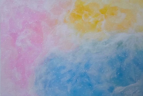 I had Reiki for the first time today, and when my massage therapist asked me how it had felt for me, I couldn't find the words to describe it, so I promised to paint it for her, instead.