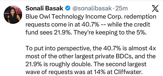 If you had $1m invested in a non-traded BDC and requested $100k but were gated and allowed only $50k of your pro rata entitlement, how much would you request next quarter? Probably several times that amount... So buckle up for headlines in Q2.