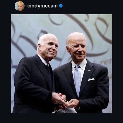 Cindy McCain posts beautiful message of support to the Biden family: “Dearest Joe, my heart is breaking for you and your family. What I do know is your strength and tenacity will persevere. Thank you for introducing me to the person who would become my incredible husband. My life has been simply amazing. I owe some of that to you and Jill.”
