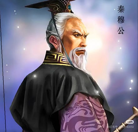 Duke Mu of Qin秦穆公 (r. 659–621 BC), named Ying Renhao赢任好, was a prominent statesman during the Spring and Autumn period and the ninth ruler of the state of Qin秦.