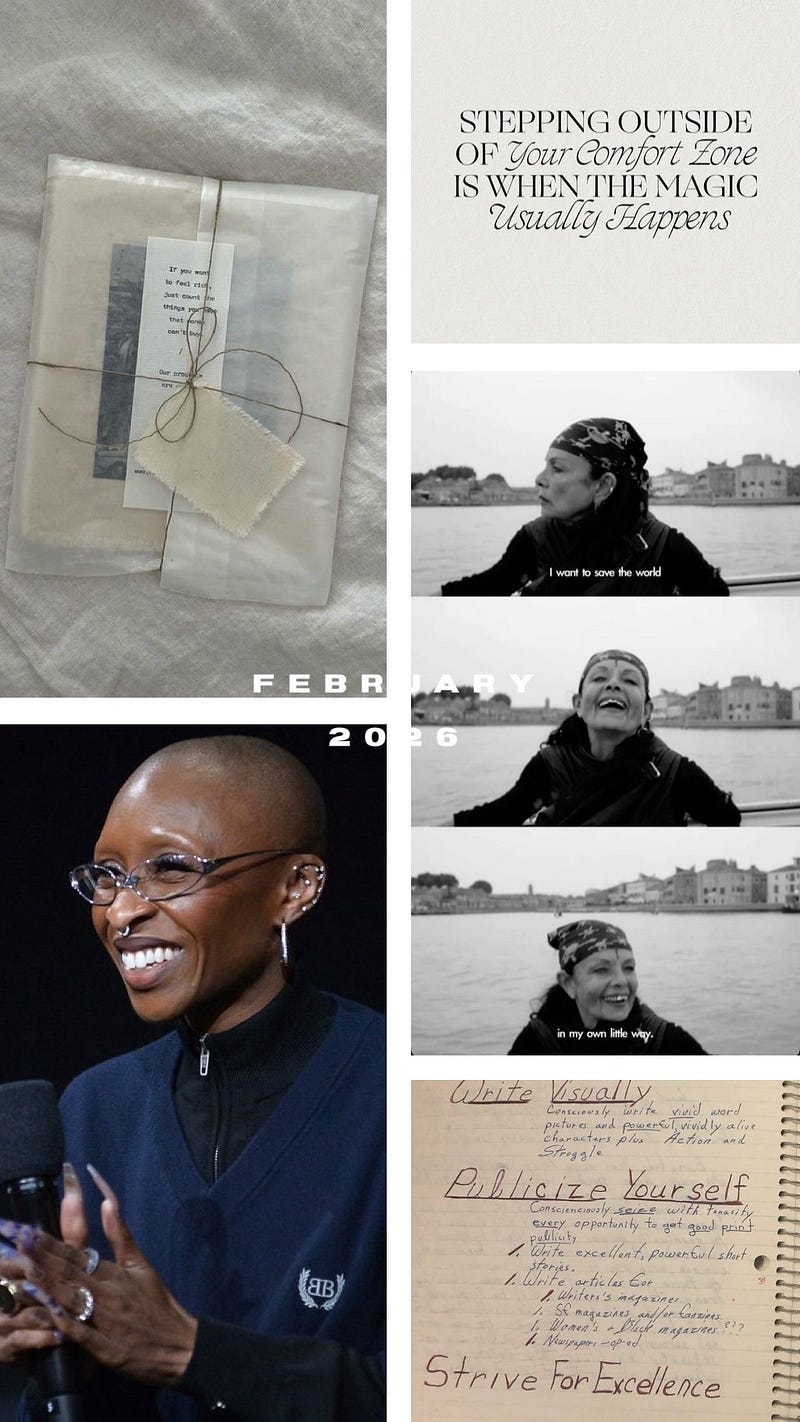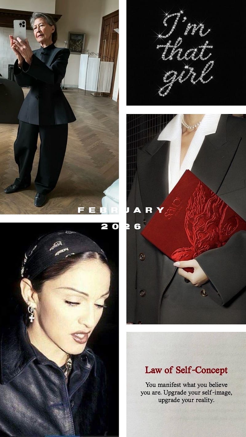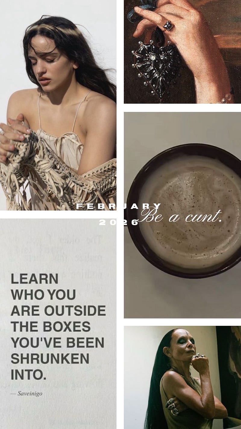 In Human Design, I’m a non-specific manifestor, which means that while I do have MANY planets in Capricorn, I’m not here to obsess over the exact form something takes, I’m here to get clear on the feeling of it. Gathering and putting together images helps me to get clear on the atmosphere, the stratosphere I want to live inside: the texture, the tone, the emotional quality, the feeling. It’s less about a specific thing and more about calibrating my nervous system to a frequency. This monthly ritual has become a way of orienting myself, not toward pressure or performance, but toward resonance (my new favorite work and longer article coming this week to unpack it)