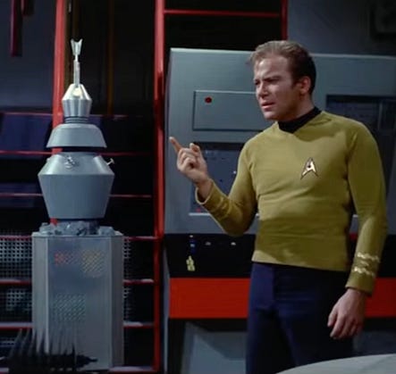 An idea occurs. Remember the episode of Star Trek in which Kirk destroys a psychopathic killer robot with logic? “Error… error…”
