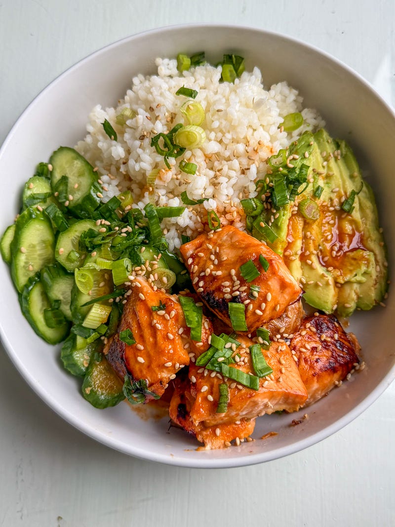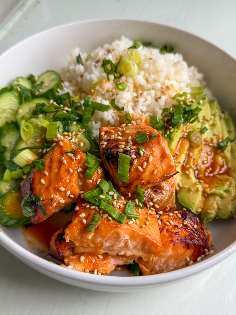 honey sriracha salmon bowls ✨🧡 recipe is posted !