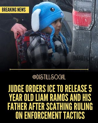 BREAKING: A federal judge just ordered the release of 5-year-old Liam Ramos and his father from immigration custody while condemning their removal from their Minneapolis neighborhood as unconstitutional.