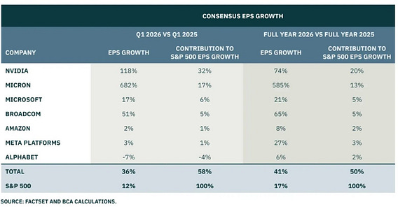 7 companies are driving 58% of all S&P 500 EPS growth in Q1.