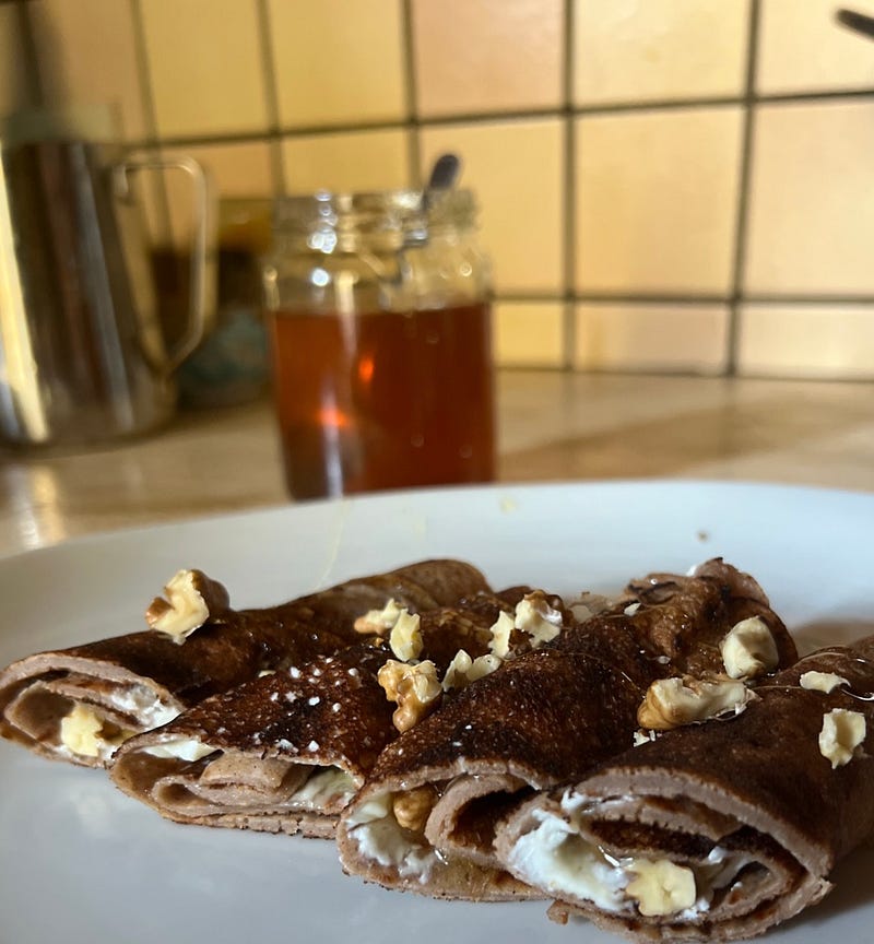 Today’s comfort food. It’s the Candelora, crepes are the recipe for the holiday. I rarely see people make crepes at home. I did an old school recipe from the hills outside of Pistoia, using chestnut flour, ricotta with walnuts and honey. The other recipe, on my newsletter today is pasta with ricotta and spinach. One of the first recipes I learned while working in a restaurant in Fiesole 40 years ago. recipe on the newsletter.