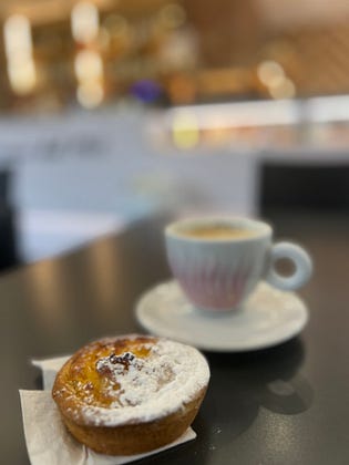 Today’s snack before hitting the market. Budino di Riso- a Tuscan rice pudding tartlette.