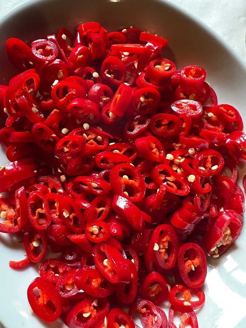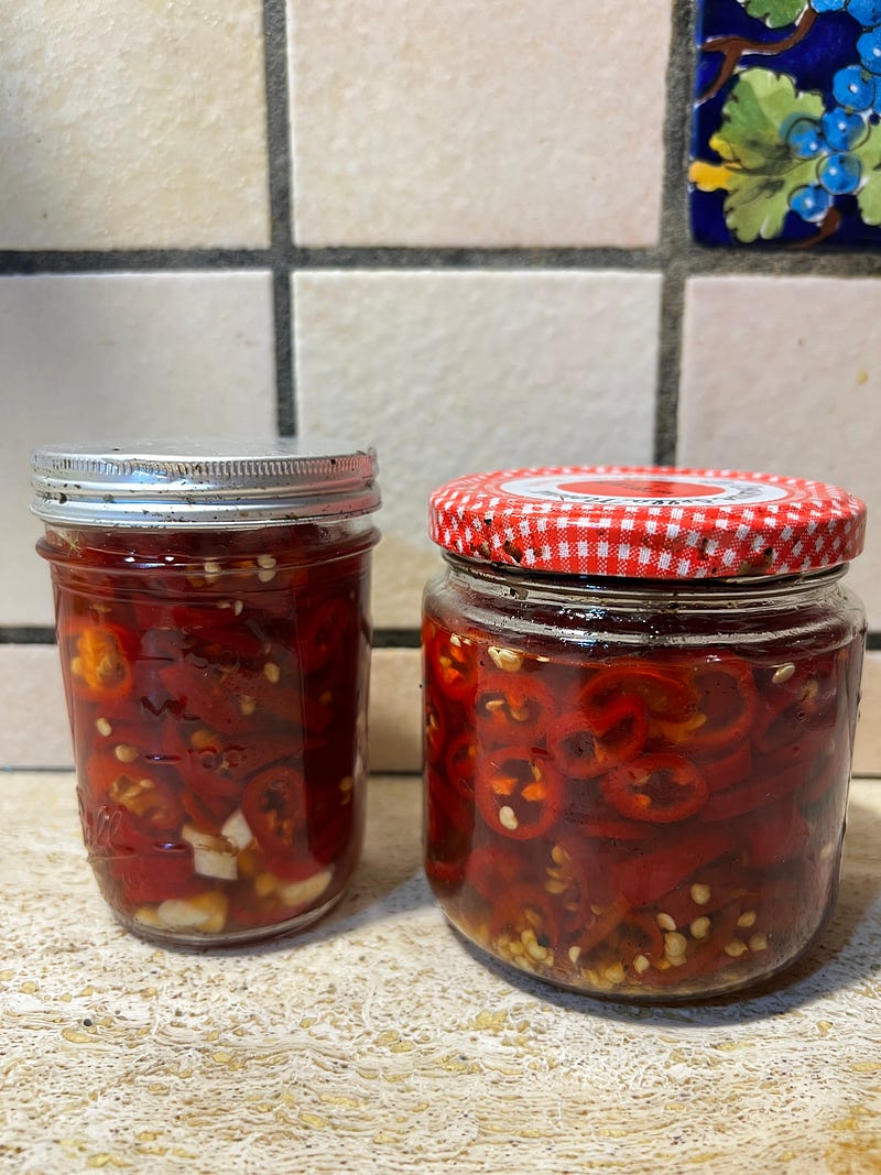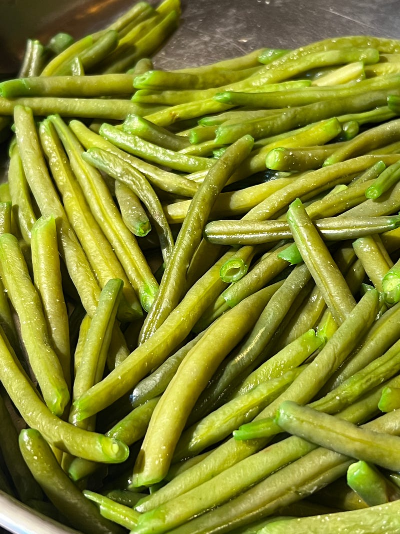 Prepping- I like to prepare things in advance- batch cooking as I shop. Fresh food doesn’t last a long time in Italy. I like to cook while it’s at its peak. A simple chili pickle and some boiled string beans.