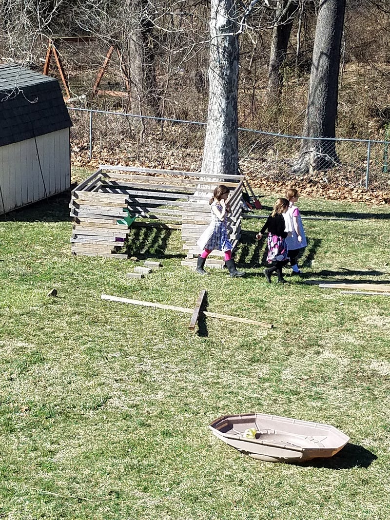 This picture was in 2019, after a girls’ book club gathering discussing “On the Banks of Plum Creek.” This is why the girls are all in dresses — and isn’t it cool that after their discussion, they were able to go outside and make their own “little house” to play at Laura and Mary in?