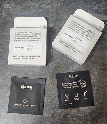 I ran out of coffee at home the other day. So I was rather glad that I picked up some specialty instant coffee at the Manchester Coffee Festival. I’ve never tried specialty instant, and was very curious about it. We had a cup of each (their House Blend, and single origin Kenya). They were alright. The Kenya was a touch brighter, but generally pleasant cups. They still had this distinct instant coffee taste to them (which I always assumed was just due to cheap source material). I wonder now whether the instant coffee taste is unavoidable in instants. Gotta try some other instants to find out.