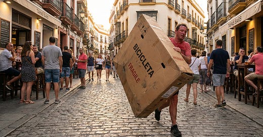 Nobody warns you about the real challenge: finding a cardboard box in a foreign city, under time pressure, while profoundly dehydrated.