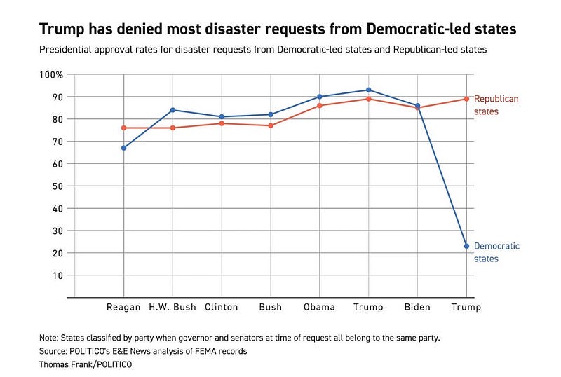 The reason the framers of the constitution did not want a single person to control appropriations is illustrated by the clearly partisan way Trump is treating emergency funding requests from red and blue states