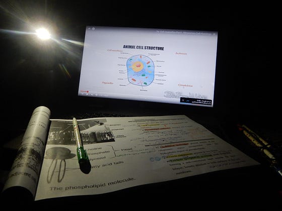 On my way to achieving a dream that has lived with me for years, I do not care about the fatigue and exhaustion that I feel. This photo is from the last night of midterms in my first semester. Even in genocide and no electricity, Our education is still continuing.