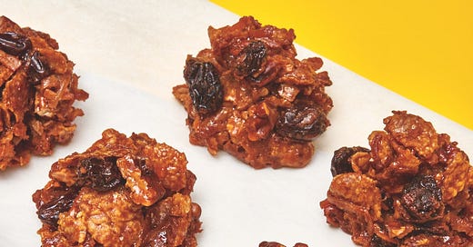 I seem to have become a serial sweet cereal snack-lover. First it was RKTs (Rice Krispies treats) and now it’s those delicious little cross-continental puff balls made with cornflakes. The ones known as Haystacks in America, and Roses des Sables, or desert roses, here in France. While they’re usually no-bake, I played around with the recipe a while ago and baked the roses to a crackly, glossy prettiness. The haystacks were tucked into a fold in my memory and popped out the other day when I saw them transformed into tartlets. So nice. Reminded of them and inspired, I’ve put recipes for both baked and unbaked versions in today’s newsletter. If you scoop the confection into a crust, LMK – xoxo Dorie