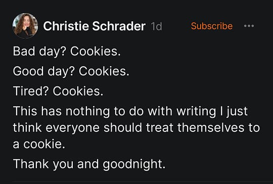 I displayed a lapse in judgement today and bought a cookie. Like a child. I rationalized it by telling myself it’s leg day and the carbs will go to good use. An unfortunate woman moment. Ethically obese. Boy was it tasty though. I apologize to my readers, I will do better.