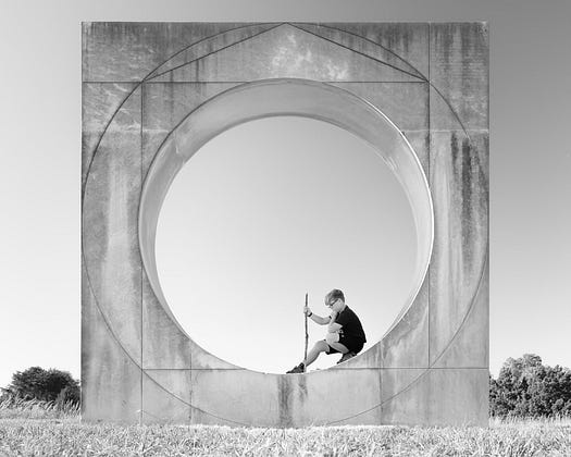 Aminus3 Photography photo prompt for Circular: This one reminded me of a family trip to Bernheim Forest & Arboretum in Kentucky circa 2019. We had fun with everyone posing in this large limestone art piece.
