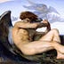 The painting is "The Fallen Angel" by French artist Alexandre Cabanel.