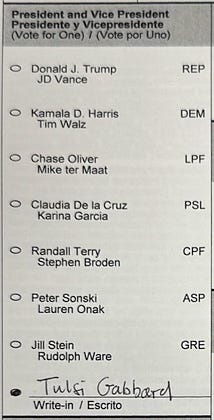 None of these political puppets and clowns will change anything for the better, also not Tulsi Gabbard or anybody else.