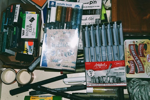 Is this how I imagine storing my pens forever? No, but for now, I’m just grateful to have so many fineliners to draw with.