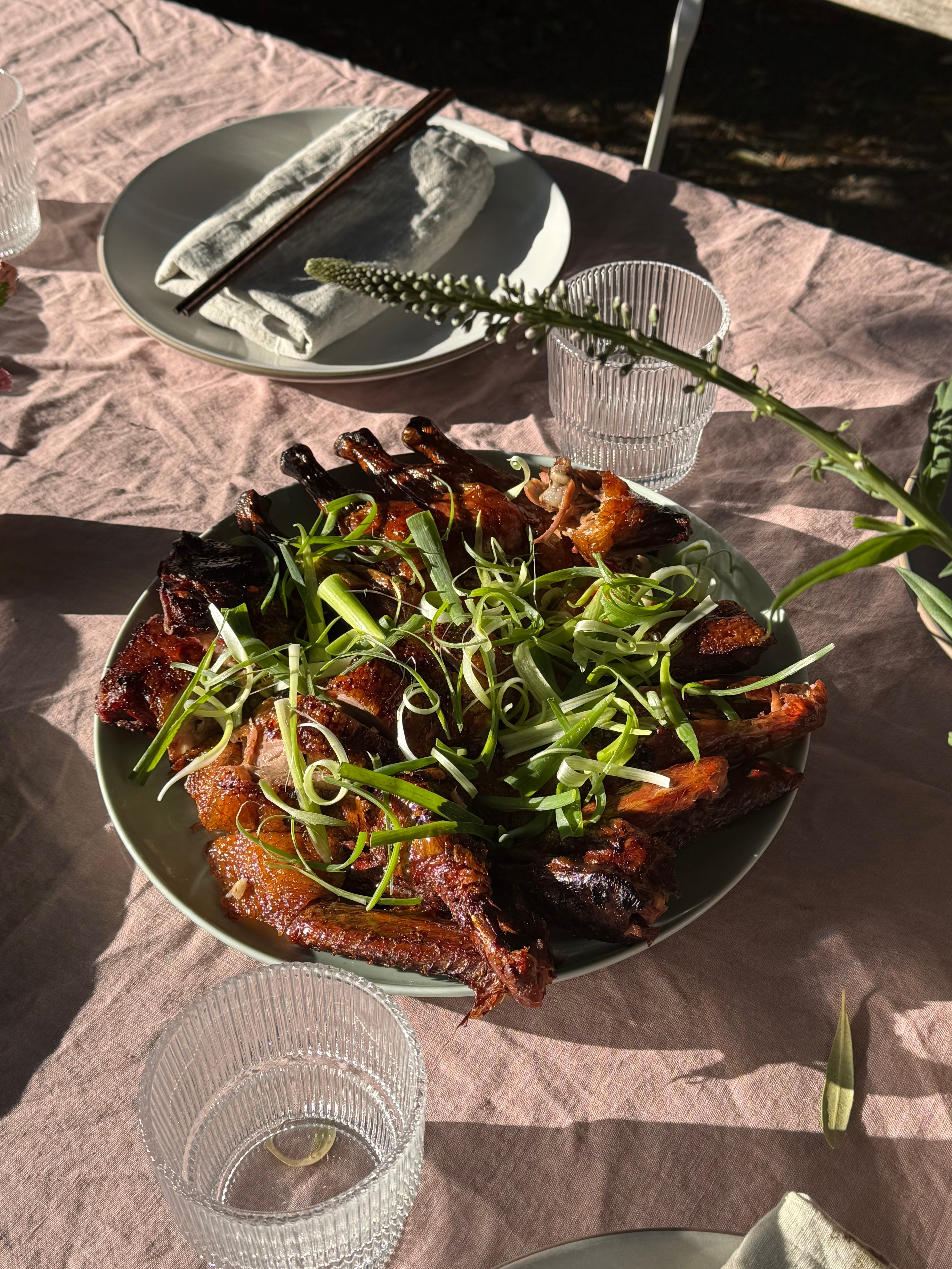 We celebrated our summer birthdays with family and friends who feel like family with smoked duck, salt n’ pepper squid, summer tomato salad with chive mayo, tom yum focaccia, wood ear mushroom and bean curd salad, and ice cream with plum jam topped with a fortune cookie just like at our family restaurant ☺️