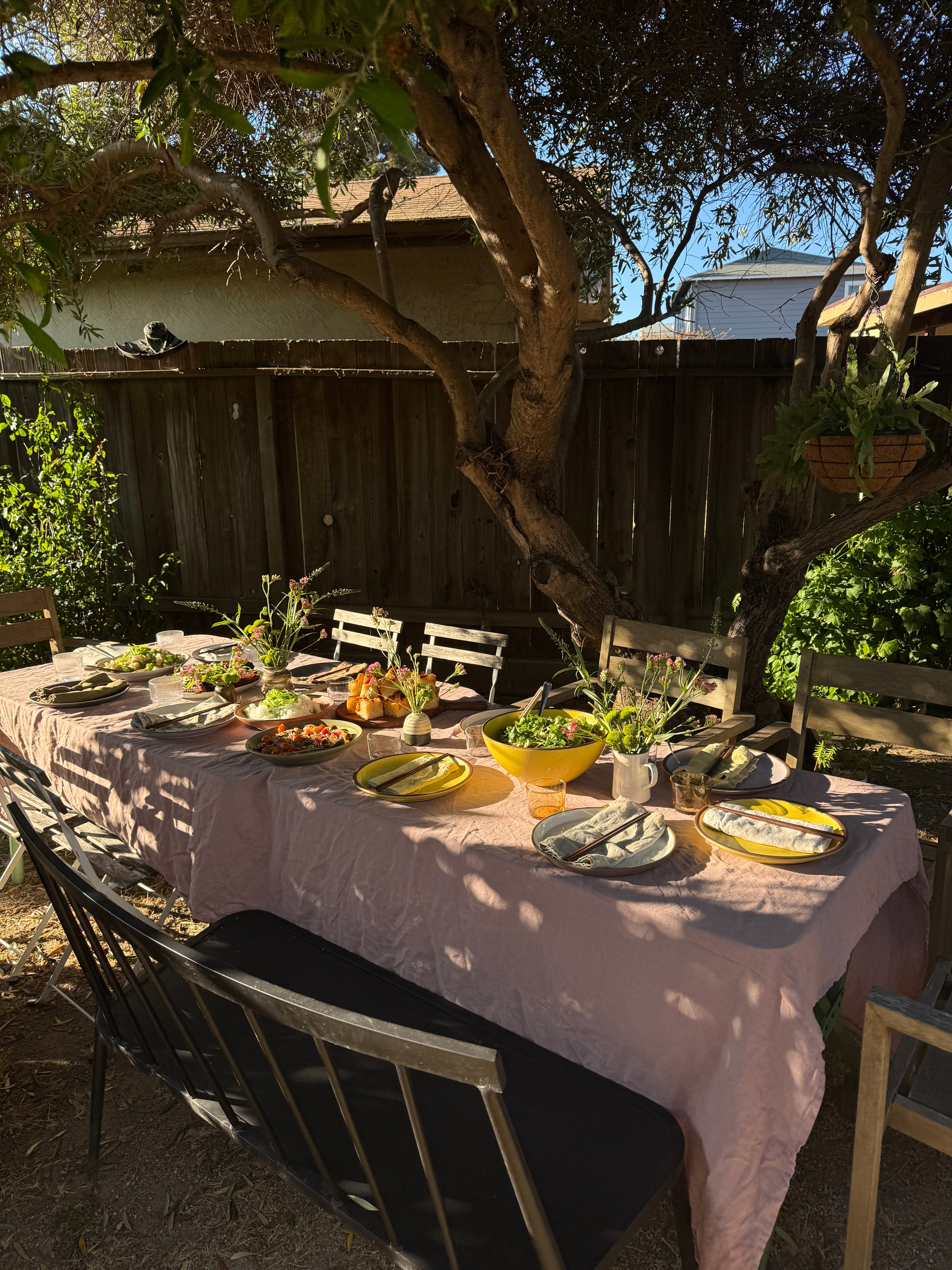 Friday night dinner in Olive’s garden under the olive tree 🧡🧡🧡