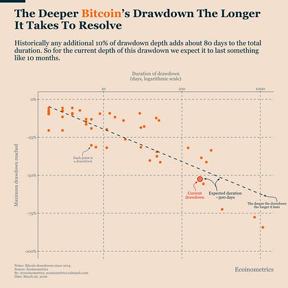 The deeper Bitcoin’s drawdowns, the longer they last.