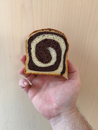 I love baking from my own books, this is the cocoa swirl milk bread from Chocolate Baking.