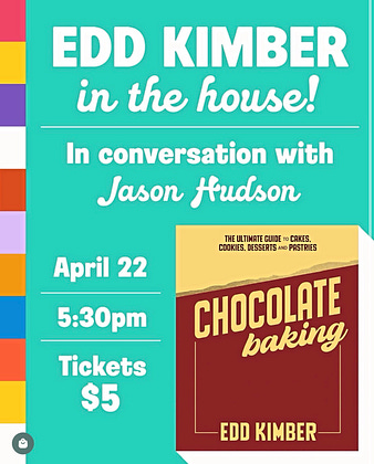 APRIL 22 / 5:30 pm We’re thrilled to welcome Edd Kimber to Good Egg, on the fine occasion of his incredible new book, Chocolate Baking (Quadrille). Edd is on tour from the UK, and this is his only Canadian stop. Happy days! You’re invited to a Q&A with Edd, AKA The Boy Who Bakes & Jason Huds…