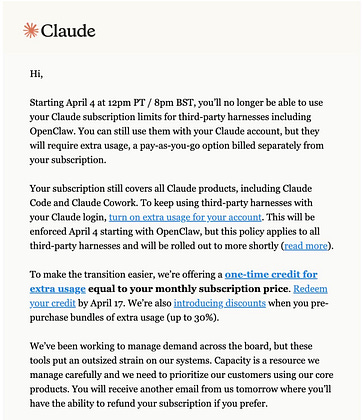 No ha prohibido herramientas de terceros como OpenClaw. Lo que ha hecho es sacar ese uso de la suscripción y llevarlo al pago por uso. El matiz importa: no cierran la puerta, pero convierten ese acceso en algo mucho menos cómodo, más caro y más limitado para quien ya lo estaba usando.