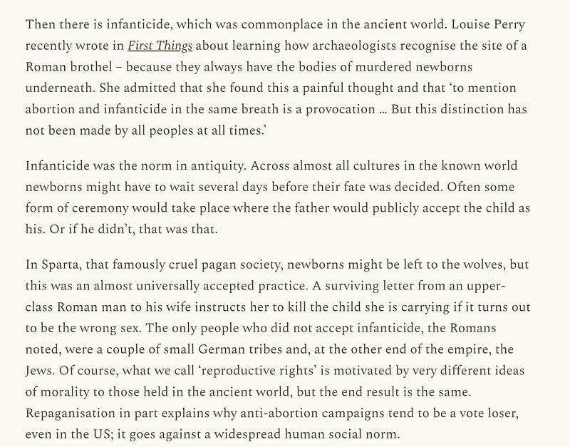 Britain has voted to legalise infanticide. Back in 2023 I wrote about how infanticide is the historical norm, and the Christian world an exception
