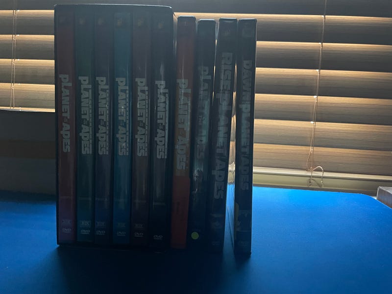 Now that I got a box set of all the original films, I have almost every movie and TV show of Planet of the Apes! Just need War, Kingdom, and the live action TV show