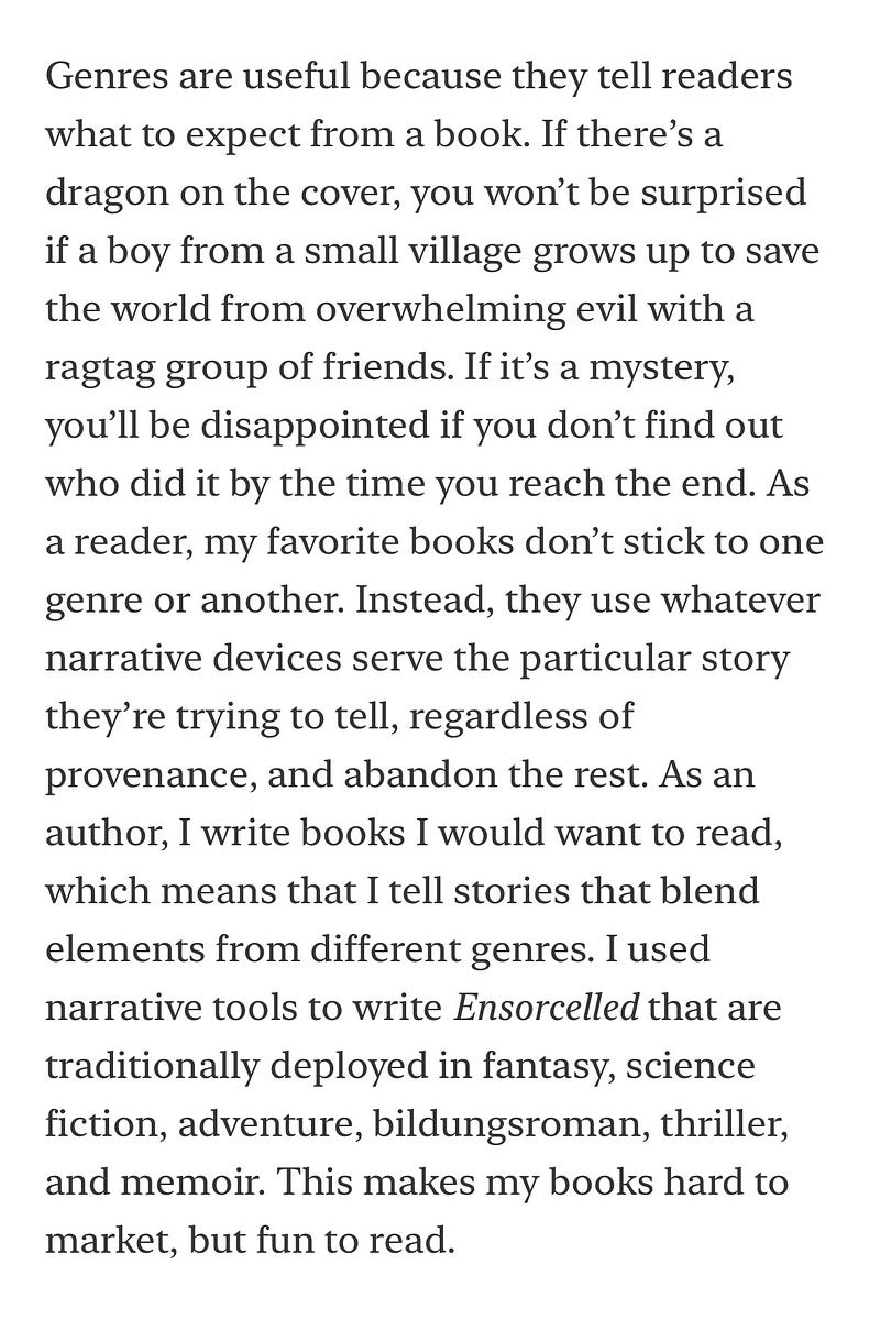 Why Ensorcelled is hard to market, but fun to read.
