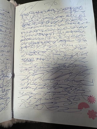 just a journal my kid writes her stories in, before actually learning how to write. today she read me a story about space elephants from it. life is good