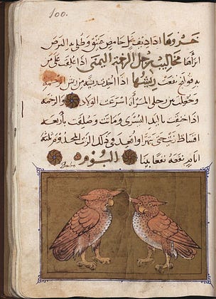 Love these cute owls from the 14th century Book of the Usefulness of Animals.