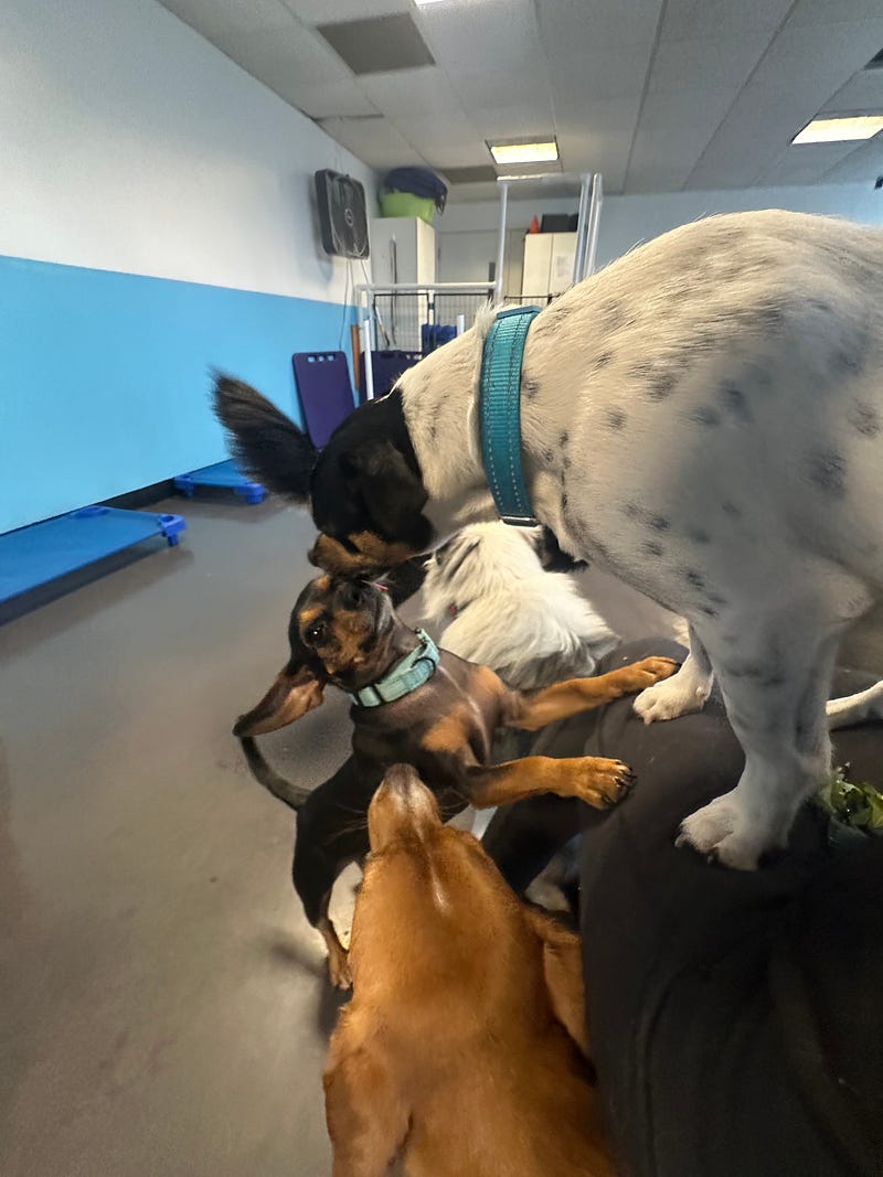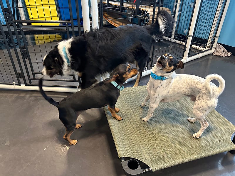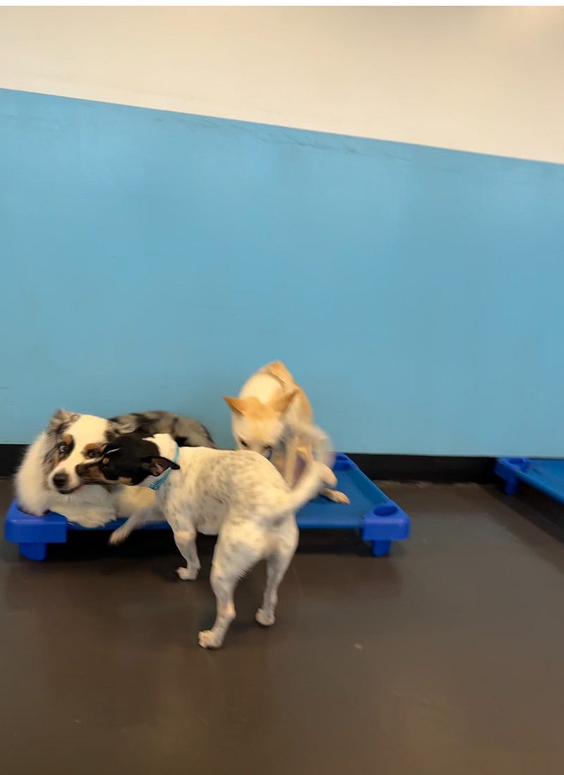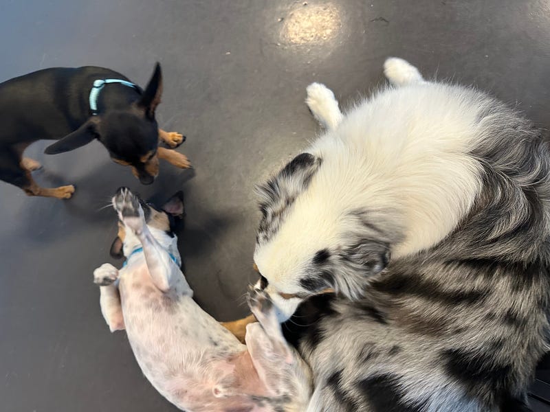 Jerry seems to have made friends with an Aussie and a little terrier mix.