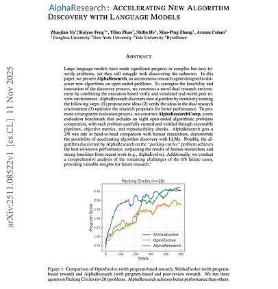 AlphaResearch tackles a fundamental challenge: can LLMs discover truly novel algorithms that push beyond existing human knowledge?