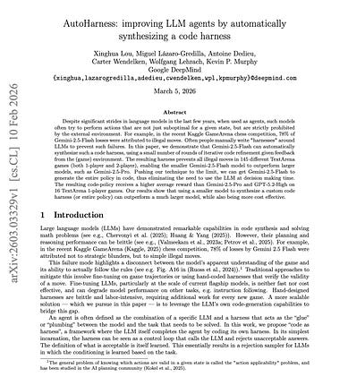 AutoHarness proposes letting agents automatically synthesize their own code harness. Instead of hand-crafting the execution environment, the agent generates the scaffolding it needs to complete a task.