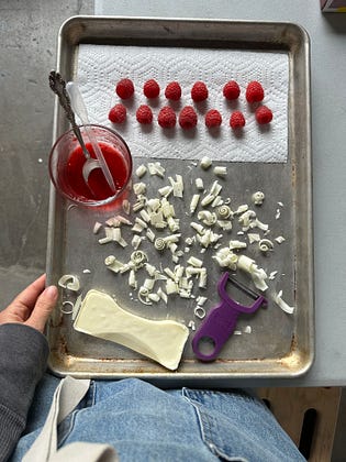 Styling flavor cues this week. What are flavor cues you ask? They’re the ingredient or ingredients on a package that show the consumer what flavor they’re picking of whatever product they’re buying. Like raspberries and white chocolate curls for raspberry white chocolate truffle ice cream for example.