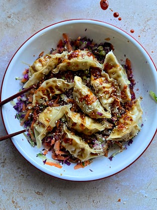 Dress everything in soy sauce, sesame seeds and crispy chilli oil