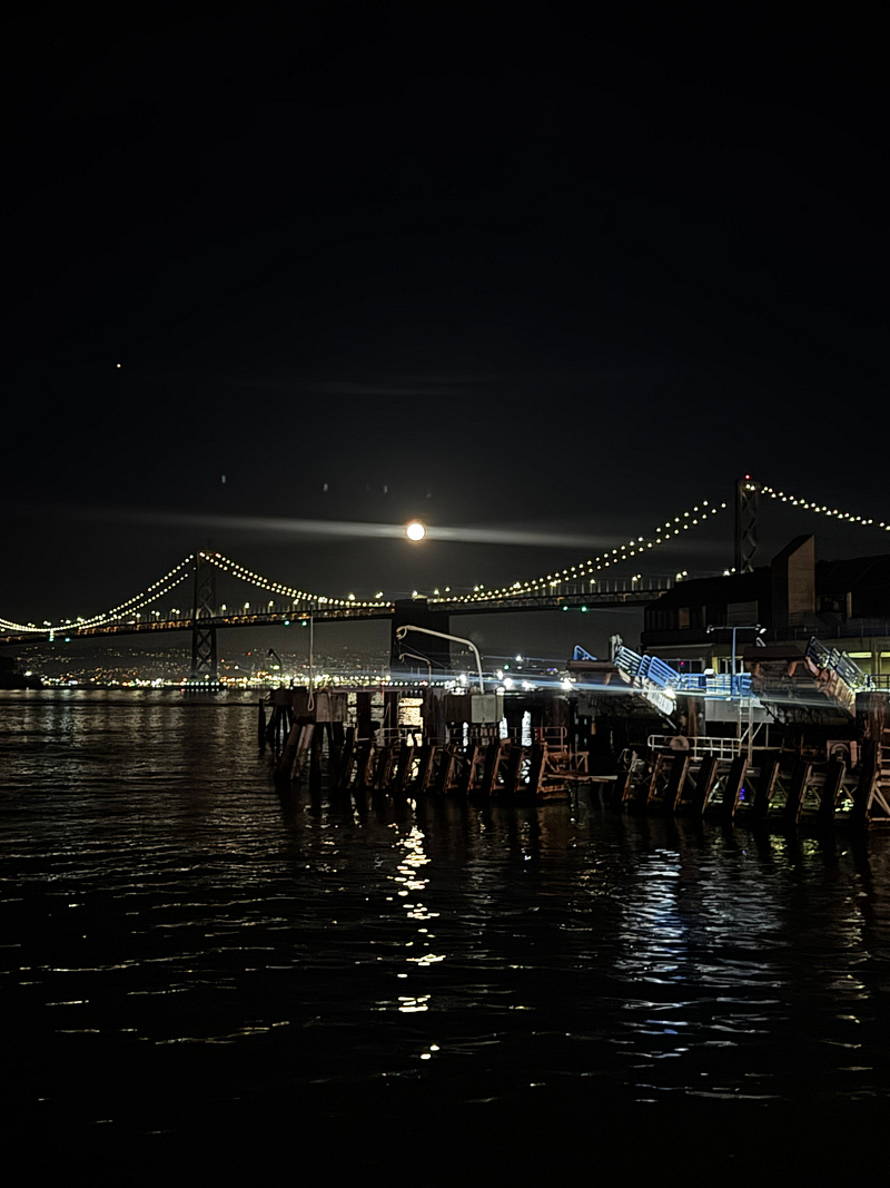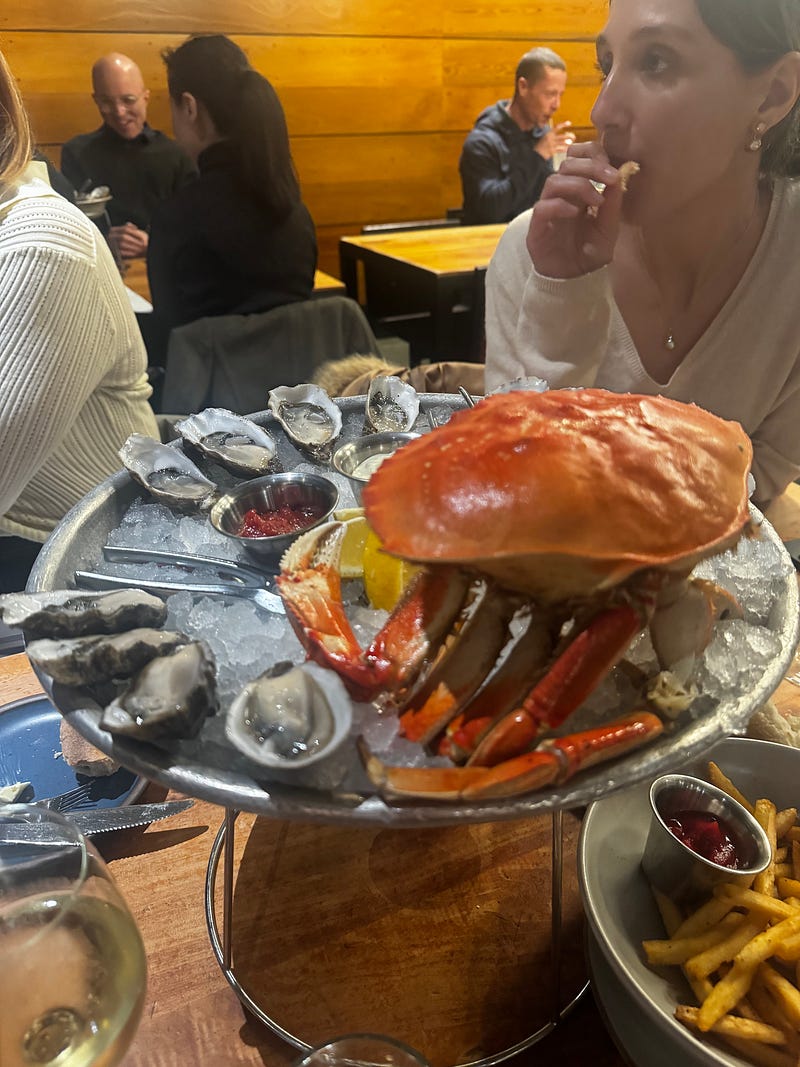 Snow moon, Dungeness crab, icy martini glasses at Bix, and a shell candleholder at Monastery.