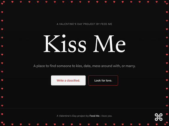 On my one precious Saturday, I am building you guys a Feed Me dating site (that will only be live for the week leading up to Valentine’s Day)….
