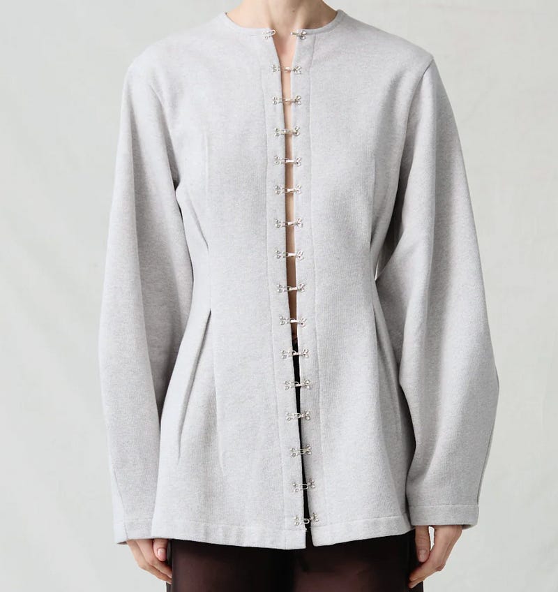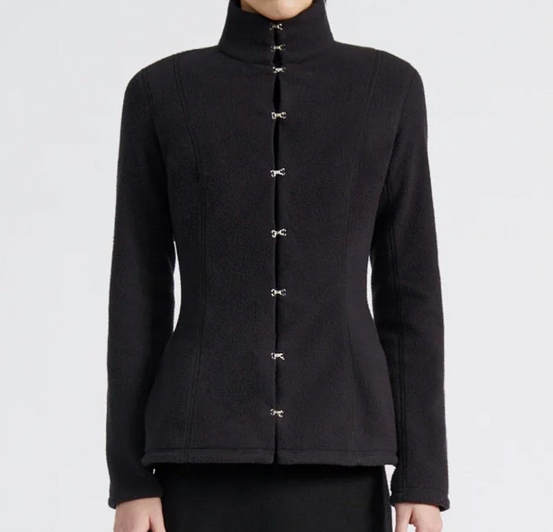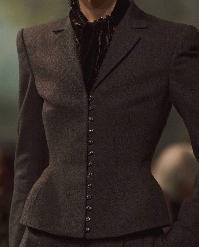 I really like the look of hook and eye closures instead of buttons. (Ralph Lauren Fall 2026, Margot Robbie in Galliano for Wuthering Heights press tour, Chan Luu, Colleen Allen)