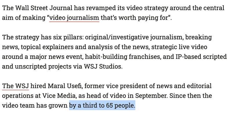 It’s noteworthy that both tech companies and legacy news companies are investing in GOOD video teams.