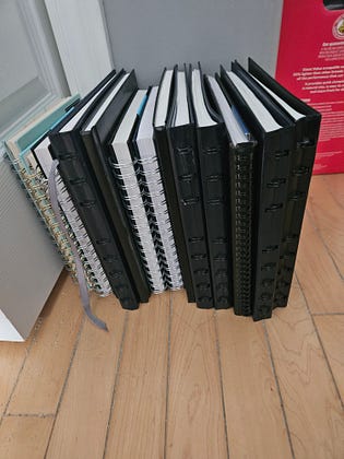 For years, I didn’t write poems for the same reason Brian Wilson didn’t talk about SMiLE. But someone on phasebook asked if I was still poeming. So i started doing them again. I put them on blogger and tumblr and insta and many are probably lost forever, at least the ones i did not delete. These note books and a mess of scrap paper and word files contain works going back maybe seven years or so. I have no idea what to do with any of it. I would rather create new ideas than salvage old ones. But i do keep these because who knows.