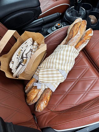 Well, itβs a good thing I just happened to buy dish towels this morning. I forgot this one bakery in town just gives you the bread just like that no paper or bags πππ«π·